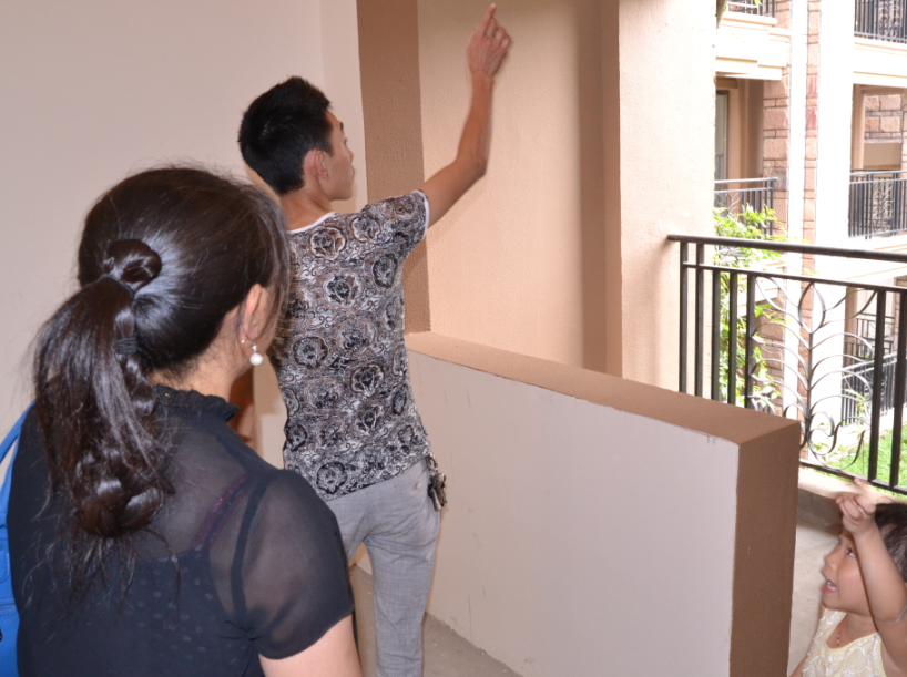 这家人正在仔细验房,层高、面宽、径深,墙壁、门窗、天花板,预留端口、踢脚线、客厅、卧室、厨房、洗手间,每一个角度,每一个细节都不放过,一圈下来,眼神里是遮掩不住的笑意。